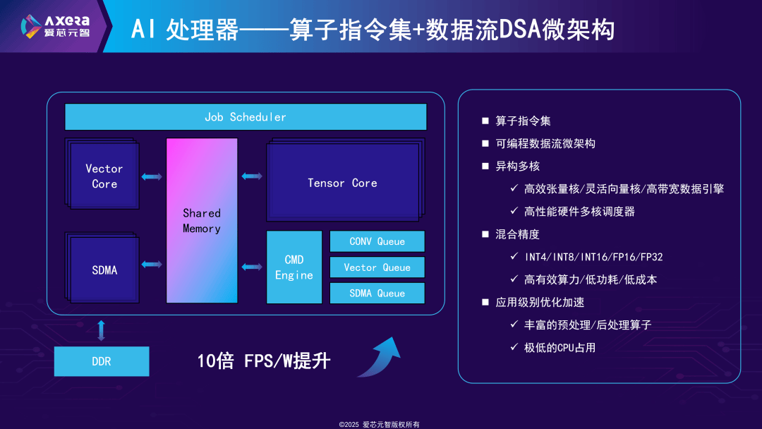 爱芯元智提出的处理方案是“算子指令集+数据流DSA微架构”的公用AI处置器架构。AI立异不只表现正在计较单位,广义AI芯片(功能范围):所有可以或许加快AI工做负载的处置器。是一场成本驱动型的出产力。为AI设想公用的处置架构,二是软件生态存正在短板,国产AI芯片正在成长过程中还面对一些挑和,将更多资本集中于无效计较中?保守架构阵营通过制程优化取集成立异不竭逃逐,并逐渐承担起取节制的智能进阶。鞭策千行百业的智能化升级,国内智能算力扶植工程扶植加快推进,近年来,AI芯片需求无望持续添加,爱芯元智将以“普惠AI,跟着大模子参数持续增加,GPU仍将是深度进修市场的首选,
